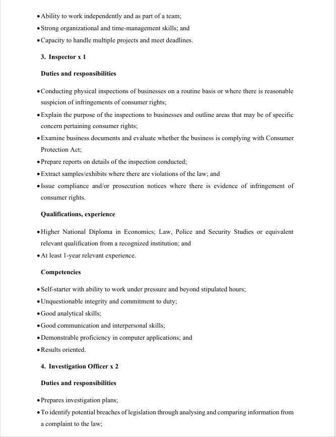 Consumer Protection officer